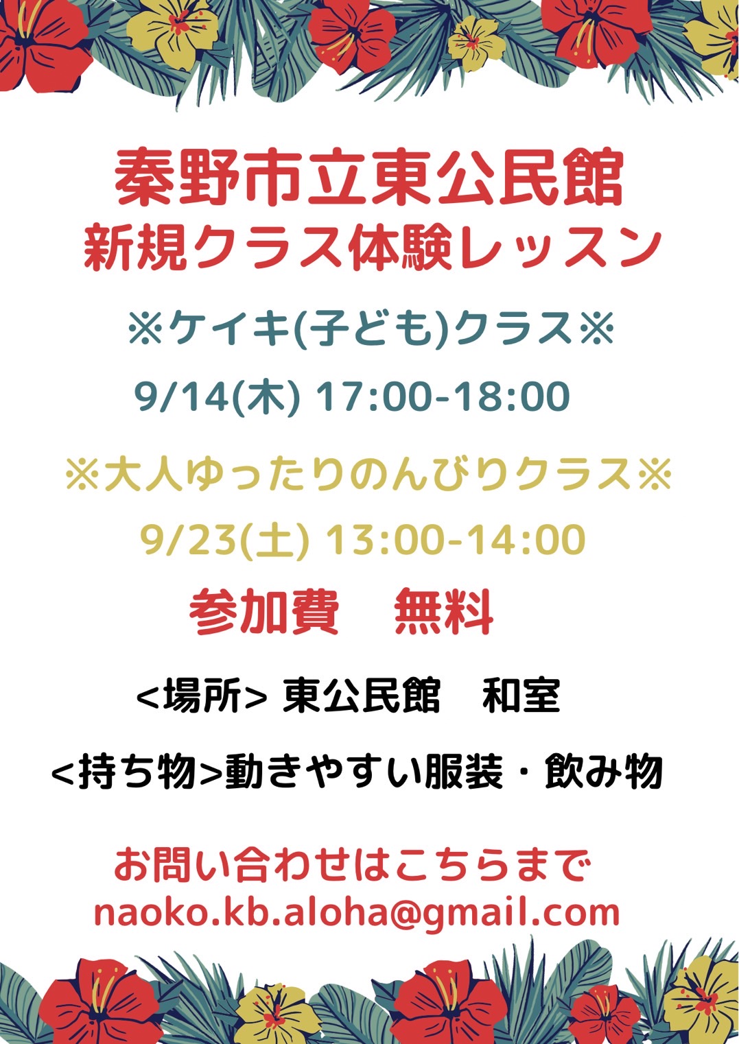 秦野市立東公民館新規クラス立ち上げの為、無料体験会を実施いたします。